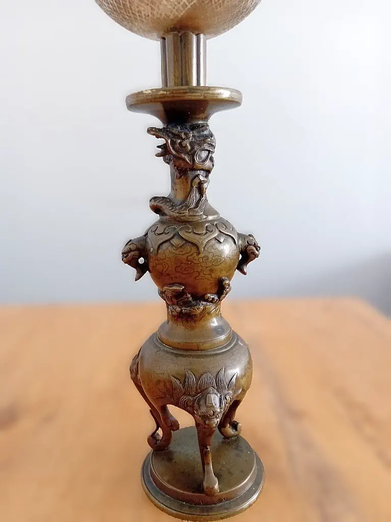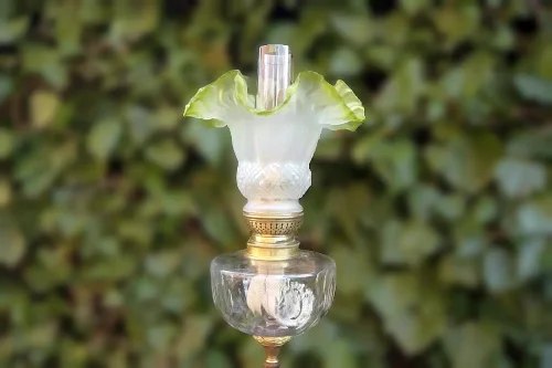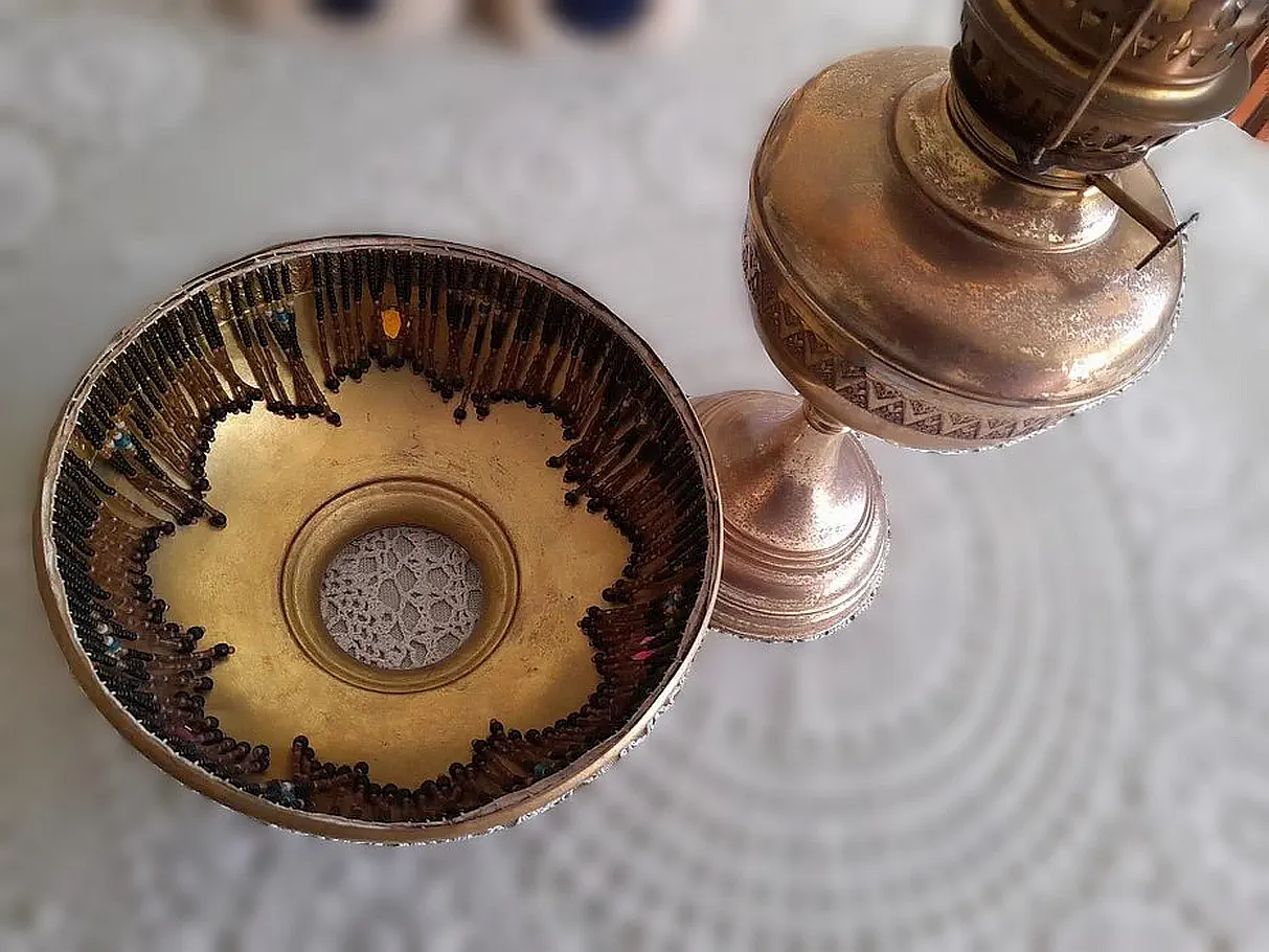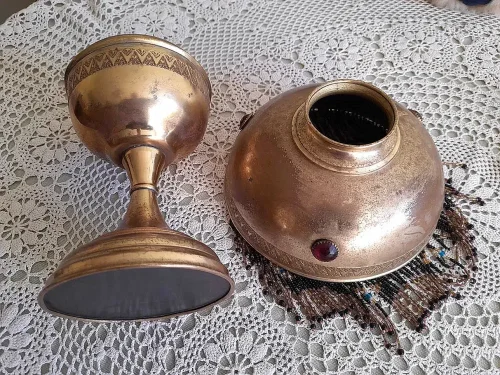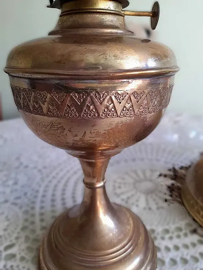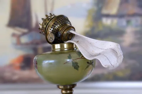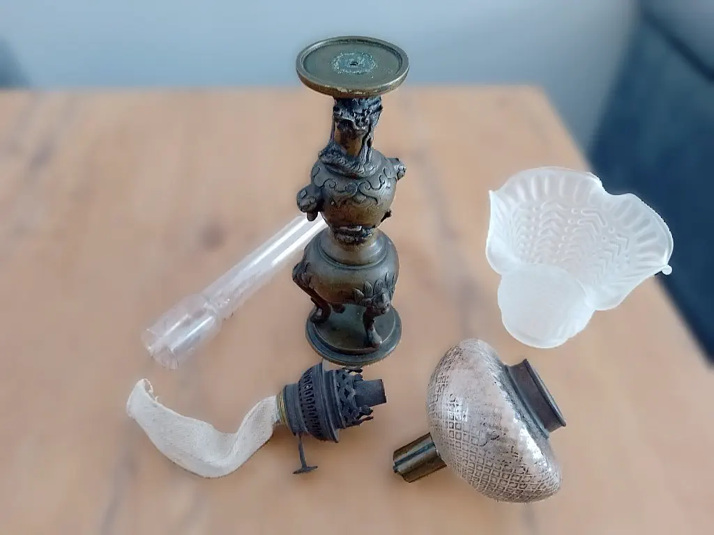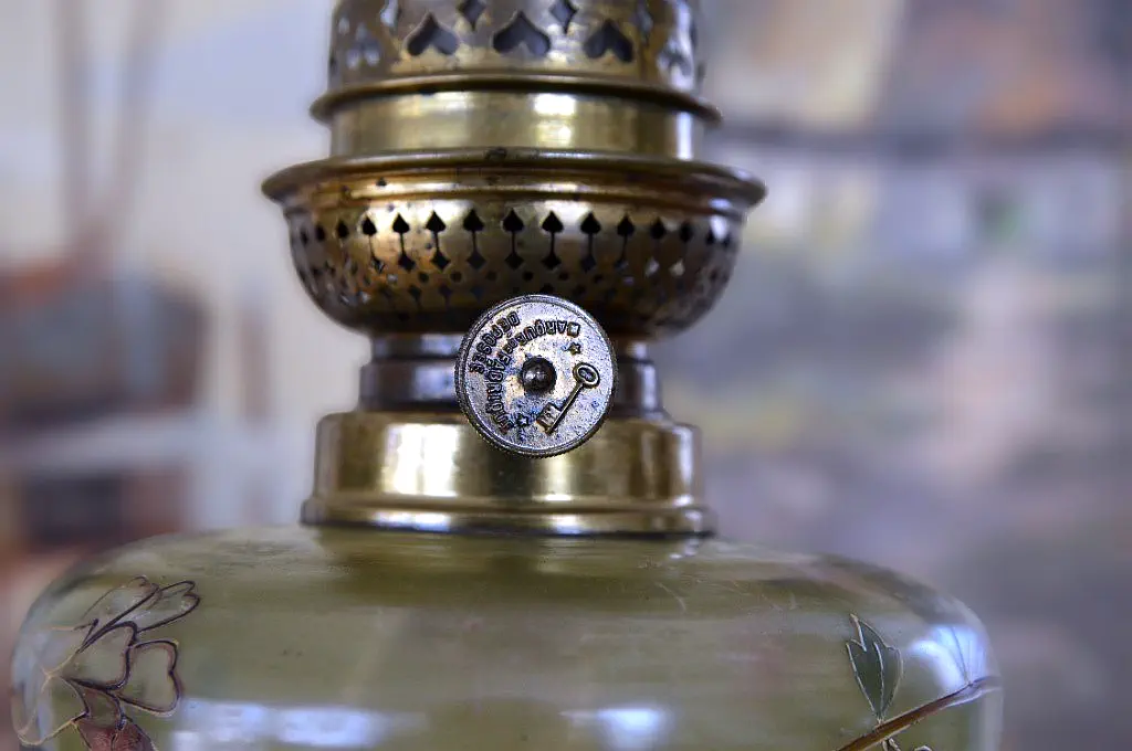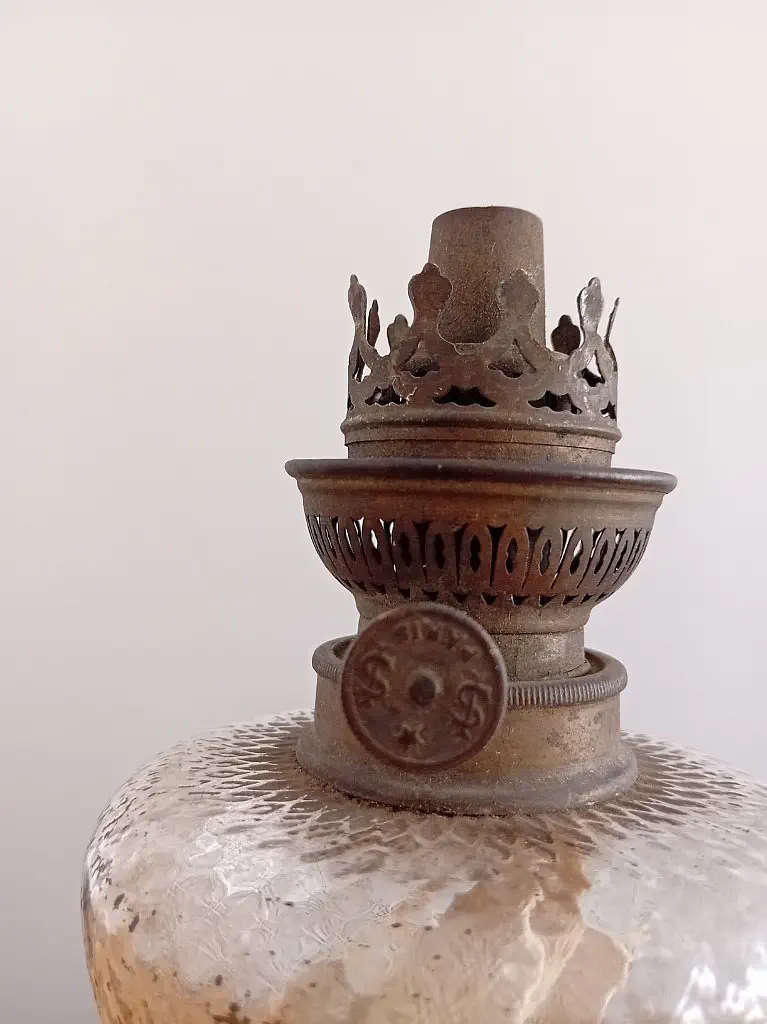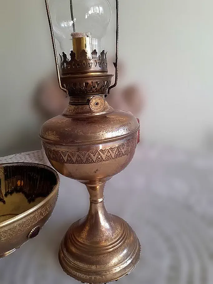 Francuska lampa naftowa "Paryżanka". Wykonana z mosiądzu.